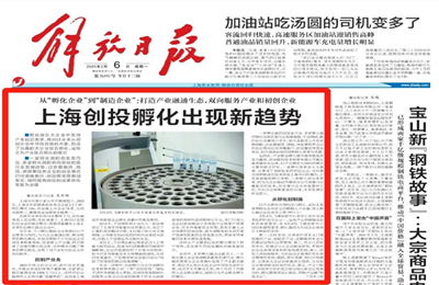 2月6日,《解放日报》头版头条刊发《上海创投孵化出现新趋势》。文中介绍启迪技转探索以产业需求为导向,与大企业融通创新、联合培养的产业孵化模式,并成功帮助初创企业完成技术场景落地。