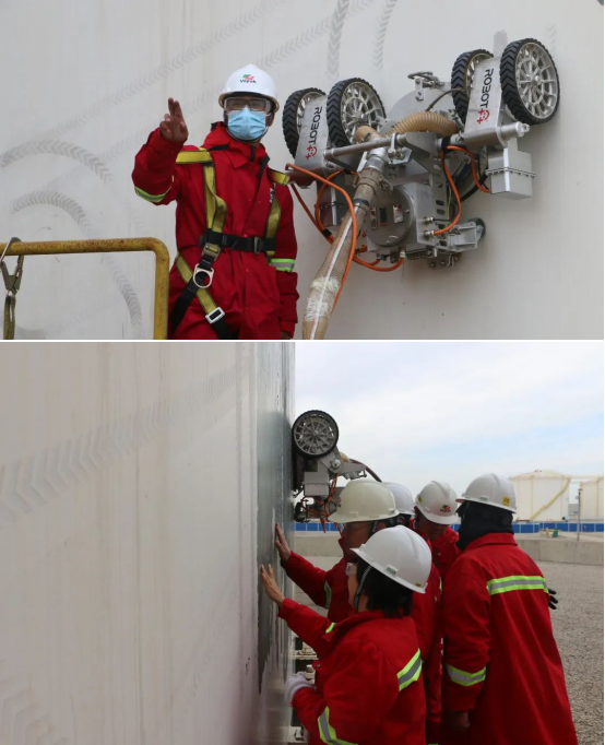 由启迪技转推荐的北京史河科技有限公司的化工防腐机器人在天津孚宝渤化仓储有限公司(以下简称“天津孚宝”)圆满完成了储罐外壁除锈作业任务,作业效果得到了客户的高度认同。